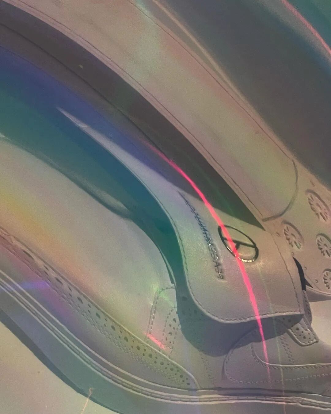 其实早在 2015 年,权志龙就和号称“摇滚鞋王”的意大利品牌 Giuseppe Zanotti Deisgn 联名设计推出过非常闪亮的皮鞋。这么多年过去了,权志龙这一次和 Nike 的合作再次玩起了皮鞋元素和设计,能看出来,无论是穿搭还是对设计思路的影响,皮鞋绝对是权志龙的真爱。