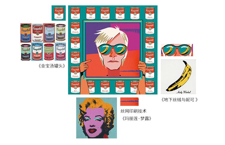 安迪沃霍尔之所以成为当代艺术大师,正是因为他把商业符号、日常用品和自己的自拍都变成了艺术品,从《金宝汤罐头》,到《地下丝绒与妮可》专辑封面中的香蕉,再到无限复制的《玛丽莲梦露》,每一件都在重新建构着世人的艺术观。