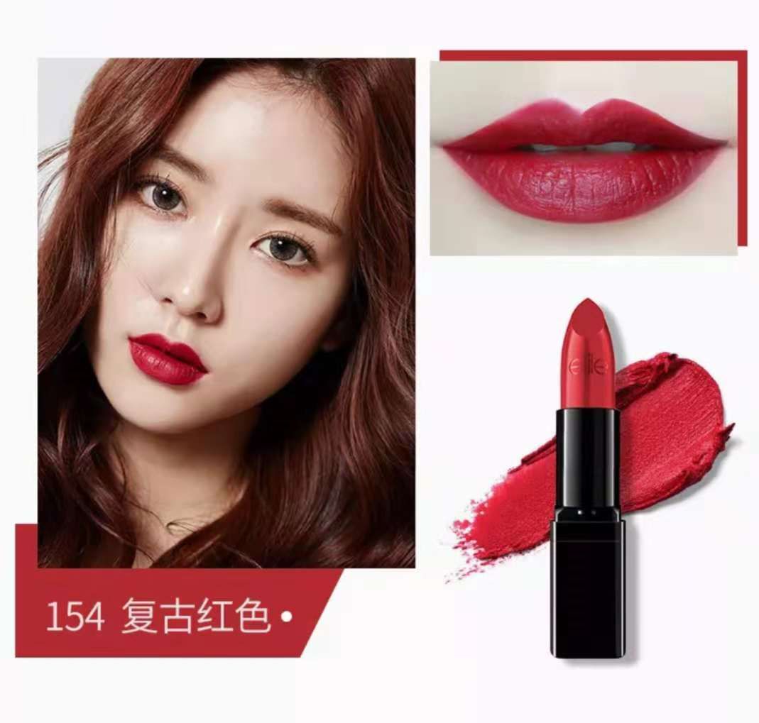 #154:复古红,颜色调的很纯正,上嘴的妆效很有质感也很高级,秋冬搭配大衣很适合,让衣服看起来都贵几倍。素颜可以薄涂,厚涂绝美。最显白,涂上这款口红后我可以一天不吃饭。
