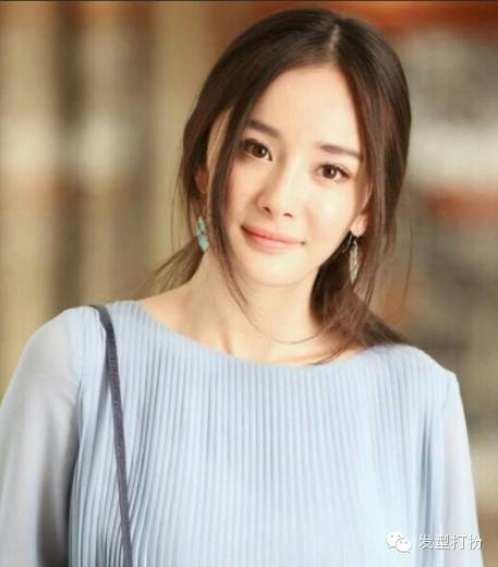 杨幂的这款中分留有鬓角的发型看上去很知性大方,淑女范十足!