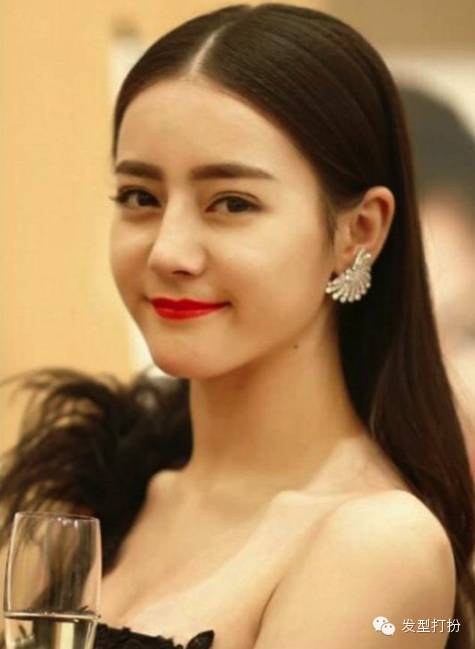 女王范的斜分造型,让她显得更加高贵,精致的五官配上圆圆的脸型,不失可爱之风。把长发挂在耳后露出耳环,显得十分优雅。
