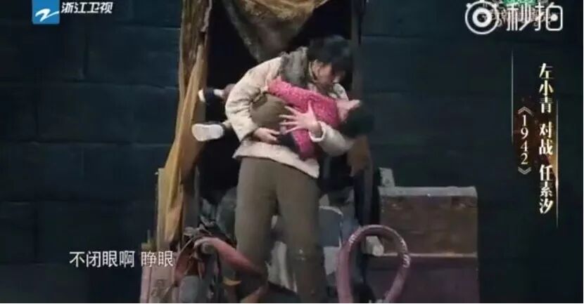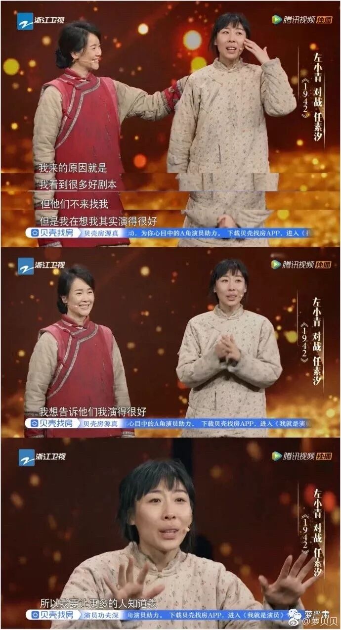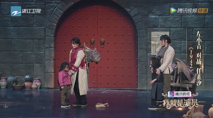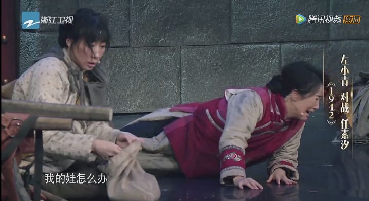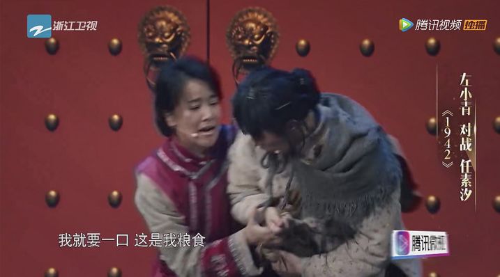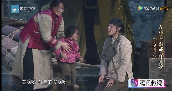 在《我就是演员》的舞台上,和左小青对战《1942》饰演给孩子找粮的母亲。