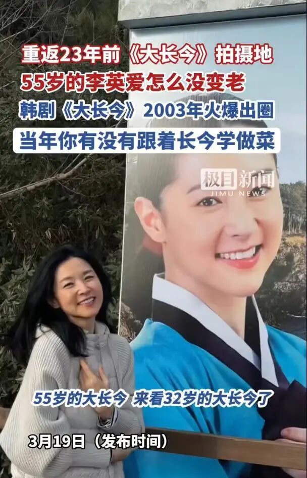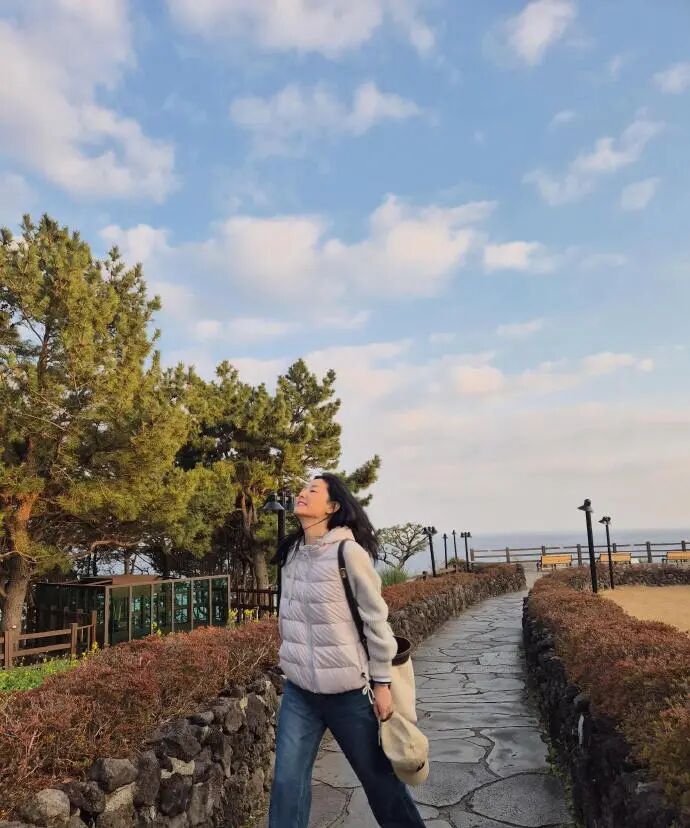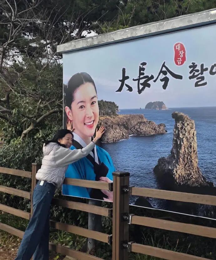 3月19日,有报道一出,网络炸了,55岁的李英爱,在社交平台晒照,地点在济州岛西归浦外陶盖,老粉一眼认出,正是大长今的核心取景地,熟门熟路的那块礁石,还在风里
