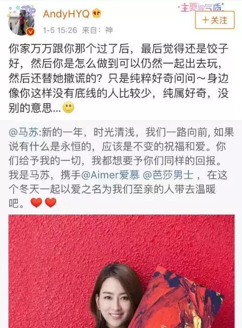 但是,这之后黄毅清就显露了自己戏精本性,将对准皮几万的矛头转向了马苏,强行拉着她加入了战局,在爆料中,马苏俨然就是一个“娱乐圈的老鸨”,舆论一片哗然,这导致在事件发酵后期,喷马苏的人远远超过了李小璐。。。