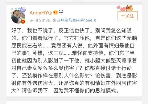黄毅清的爆料不仅没有石锤,还有一个特点,如果被爆料的当事人是软柿子,那就捏到底不松口,但是被爆料的当事人一旦是个硬茬儿,便会立刻低头认怂,简直把“大丈夫能屈能伸”演绎到了极致。