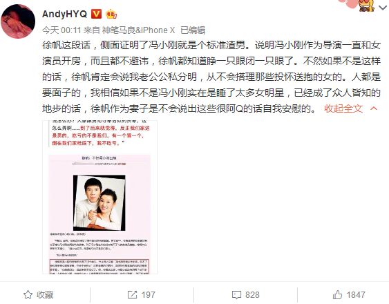 黄毅清在微博上曾公开怼冯小刚是渣男,并表示会公开资料帮衬偷税漏税事件的进展。