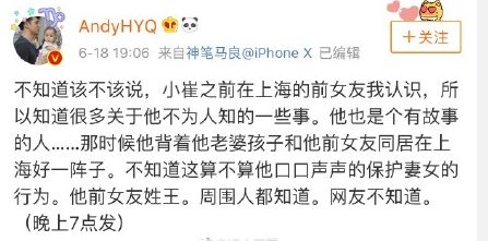 昨天,黄毅清火力全开,连发十余条微博爆料崔永元背着老婆孩子和情妇同居,情妇叫王迪,曾经和崔永元一起开过公司。