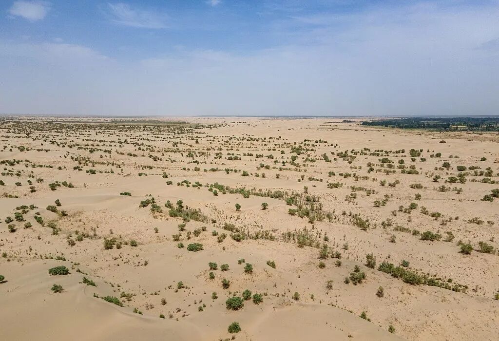 河的一岸是绿色的生命,另一岸是黄色的死亡。一脚迈出甘泉果园,另一只脚就迈进滔天沙漠。
