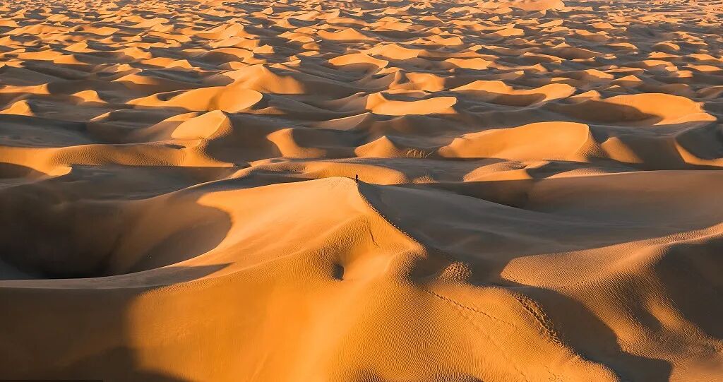 再说说叶尔羌河,也是条充满悲剧感的河。它在沙漠中扭动爬行,但却越流越小,最终被沙漠完全吞噬。