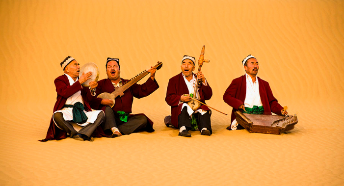 刀郎木卡姆传承人在沙漠中表演|非遗说是