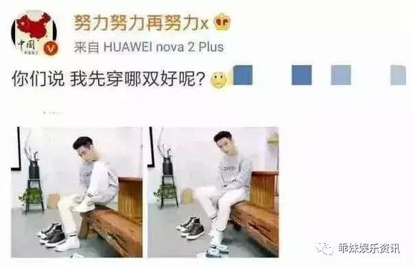 而近日,张艺兴在微博上发了一组啥照片引起了很大的轰动,就是在问各位他穿那一双鞋好看,前面放了两双鞋,而大家在评论权可谓是炸了,大家都在问是要去干嘛!是不是约会,而鹿晗在公布于关晓彤的恋情之前也曾经发布过这样的微博,问大家自己穿哪一家衣服好看,所以如今都在猜测,