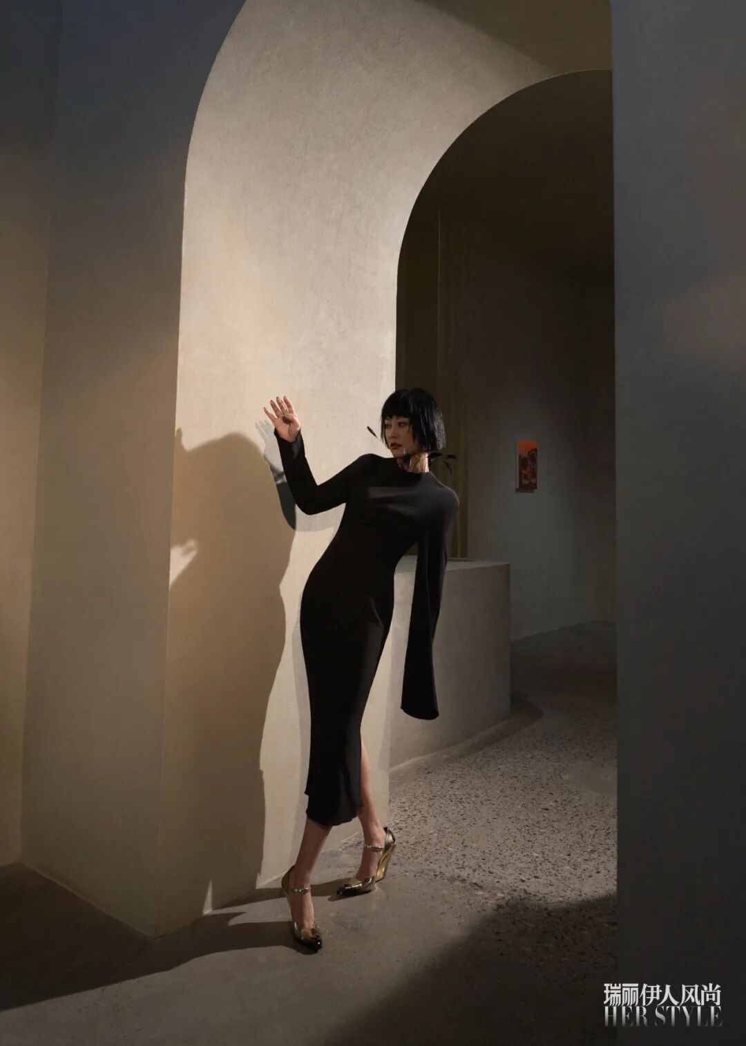 白衬衫、黑色长裤 均为MARINA RINALDI