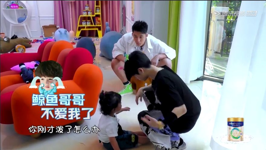 “黄三岁”不仅套路哥哥成瘾,甚至和萌娃玩儿起了“耍无赖”。在发出钓鱼的比赛规则后,黄景瑜瞬间用手捞了一把玩具当做战利品,遭到萌娃们集体“嫌弃”。但偶尔“皮”一下的鲸鱼哥哥依然深受萌娃喜爱,刚进家门就受到小跟班豪豪“翻山越岭”式迎接,豪豪加速滑楼梯时一不小心还摔了个四脚朝天,面对萌娃的卖力迎接黄景瑜欣喜不已,一把抱起萌娃的宠溺画面简直不要太暖。而刚加盟北鼻之家造型室的Tony黄一心想为自己的“爱豪”做造型,几番摸索后被豪豪残忍拒绝,而面对Tony陈为豪豪扎起的韩式半丸子头更是发起了技术上的质疑,本想抱起萌娃玩耍却惨遭豪豪无影脚突袭,这对欢喜小冤家成了不少观众的心头肉。