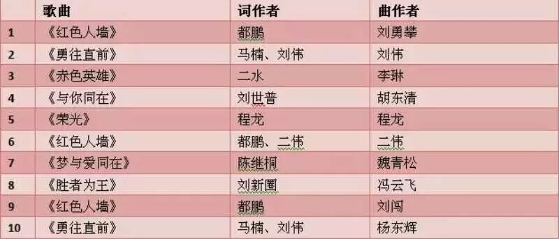 十强歌曲抢先听