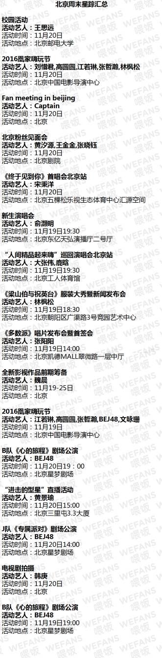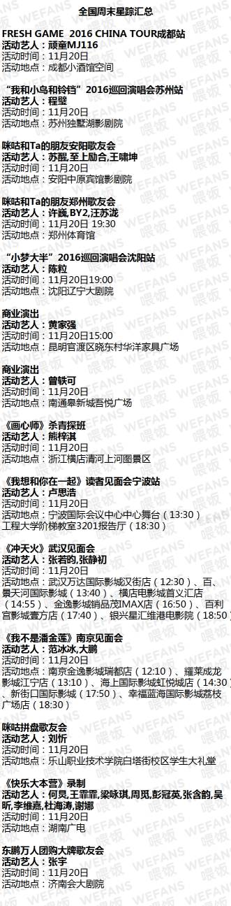 鹿晗、大张伟、唐嫣、魏晨、黄景瑜在这些地方等你,快来... WEFANS喂饭 内地男星 2016-11-18 22:16:14 1047 创作不易,用心坚持,欢迎请BaGua喝几杯爱心咖啡!打赏并支持本文 打赏并删除本文 北京·周末星踪schedule上海·周末星踪schedule广东·周末星踪schedule全国·周末星踪schedule点击蓝字查看往期内容李易峰 | 鹿晗 |TFBOYS | 杨幂 | 胡歌 | 吴磊 | EXO | 杨洋|少女时代 | 朴宝剑 | 吴亦凡 | 郑爽 | 唐嫣 | 刘诗诗 | 钟汉良 | 孙坚 |王凯 |薛之谦 |张艺兴 | 周笔畅 |徐海乔 | 马天宇 张天爱WEFANS喂饭 版权声明本微信内容为WEFANS喂饭独家整理稿件,严禁二次改编,转载请注明出处。 创作不易,用心坚持,欢迎请BaGua喝几杯爱心咖啡!打赏并支持本文 打赏并删除本文 感谢您的支持鼓励,我会继续努力的!文章地址:用户邮箱:打赏金额:USDT 请输入数字点击”去打赏“,即可进行打赏支持本文章哦 魏晨 About the Author WEFANS喂饭 功能介绍:关注WEFANS喂饭,输入明星名字即可自动获知明星行程,更有免费明星偶像见面活动等你参加! 官方认证:深圳互娱网络科技有限公司 Related Posts 椒点饭谈|吴俊余:长着一张年轻的脸,拥有一颗老派的心 2020-03-03 16:42:46 椒点饭谈|王龙华:从《红楼梦》到《重耳传奇》,王龙华一直在路上 2019-06-06 20:07:39 不是头条|04.16(黄景瑜、陈伟霆、薛之谦、大张伟、刘惜君) 2018-04-16 19:14:52 不是头条|03.05(杨幂、魏晨、新垣结衣、瑛太、迪丽热巴、周渝民、刘烨) 2018-03-05 18:54:27 不是头条|12.5(钟欣潼、王源、明道、刘诗诗、郑爽、熊梓淇、朱戬、余文乐) 2017-12-05 18:52:51 发表评论
