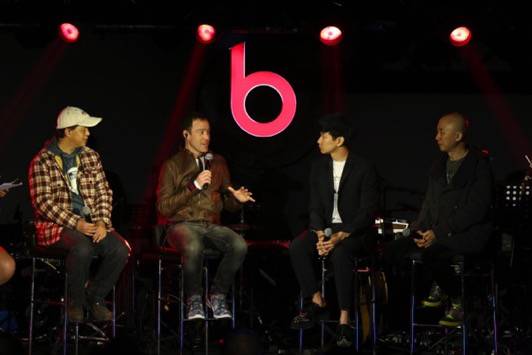 左起中国环球音乐制作人欧丁玉、Beats总裁Luke Wood、Beats品牌大使林俊杰及奇大音乐CEO许环良