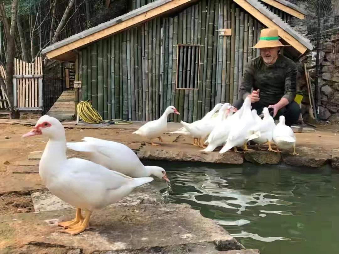 不拍戏的时候,就在院子里种花种草,遛遛狗、撸撸猫。