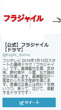 【日娱】长濑智也、武井咲5号出席新剧『FRAGILE』发布... 新世界日语 日韩男星 2016-01-06 17:47:26 441 创作不易,用心坚持,欢迎请BaGua喝几杯爱心咖啡!打赏并支持本文 打赏并删除本文 長瀬智也、武井咲に体調を心配され「安心してください、生きてますよ」武井咲担心长濑智也身体 长濑「请放心,我还活着呢」TOKIOの長瀬智也が5日、東京・青海のZeppダイバーシティ東京で行われたフジテレビ系の主演ドラマ『フラジャイル』(13日スタート、毎週水曜22:00~22:54 ※初回は15分拡大)の完成披露会見に登場し、長い撮影で体調を心配され、「安心してください、生きてますよ(笑)」と健康をアピールした。TOKIO的长濑智也5日出席了在东京・青海的“Zeep Divercity东京”举行的富士电视台日剧『FRAGILE』的竣工发布会。该剧由长濑智也主演,将于每周三晚上22:00~22:54播出,13日开播,第一集还有15分钟扩大。在长时间的拍摄中大家都担心起长濑的身体,长濑却以「请大家放心,我还活着(笑)。」的回答告诉大家他还很健康。 新ドラマ『フラジャイル』に出演する武井咲新剧『FRAGILE』中出演的武井咲同作は、現在「アフタヌーン」(講談社)で連載中の同名漫画が原作。長瀬演じる主人公の病理医・岸京一郎は、イケメンだが、偏屈で歯に衣(きぬ)着せぬ物言いで、敵ばかり作ってしまう性格だ。しかし、医師としての技量は周囲も認める天才という、周囲とのあつれきをいとわない、岸の闘いと活躍を描く。该日剧的原作是在「afternoon」(讲谈社)中连载的同名漫画。长濑智也饰演主人公病理医生・岸京一郎。虽然人帅,但也很顽固。有话直说的性情也树敌不少。但是,作为医生的专业技能则被外界看作天才。当然也从不畏惧与身边的人产生摩擦。故事描写的就是这样的岸战斗并活跃在医疗线上的故事。新米病理医役で共演する武井咲は会見で「昨日、遅い時間まで撮影をやっていたんですけど、私が前室で長瀬さんをパッと見たら、白目をむいていたんです」と衝撃の瞬間を目撃。後から長瀬に聞くと「そんなことあった?」と反応され、ますます体調が心配になったそうだが、実は武井の勘違いだった。武井咲在片中的角色是一名初出茅庐的病理医生。在记者会上,她表示昨天亲眼看到了具有冲击性的一幕,说:「昨天拍摄到很晚、我在房间里看了一眼长濑、发现他在翻白眼。」长濑听闻后的反映竟然是「有这样的事?」。这无疑让人更加担心他的身体情况。但实际上这只是武井的错觉。長瀬は、その真相を「目薬を差して、薄目を開けて目を動かしていたところをたまたま見られていたんです」と説明。そして、「安心してください、生きてますよ(笑)」と笑わせた。长濑揭露了事情的真相:「她只是碰巧看到了我点完眼药水、眯缝着眼睛转动眼珠而已」。然后笑着说:「请放心,我还活着呢(笑)。」現場の雰囲気はとても良いそうで、12月22日の撮影日に、スタジオの前室でクリスマスパーティーを行ったという。長瀬は「そんなことをドラマの現場でやったことなかったので楽しくて。スタッフも若い方や女性陣が多かったので、みんなでプレゼント交換とかやっていて、すごく華やかで楽しそうなんです」とその様子を紹介。長瀬演じる岸の同期の美人医師役を演じる小雪も「ずっとセットにいるので、みんなで動物の写真を見て癒やされたりしています」と仲むつまじいエピソードを明かした。拍摄现场的氛围也非常好,12月22日拍摄当天还在摄影棚的房间里举办了圣诞派对。长濑介绍了当天的盛况:「因为没有在日剧拍摄现场办过圣诞派对,所以我也很开心。工作人员也是年轻人和女性们比较多,所以大家还彼此交换了礼物。现场气氛非常活跃,大家都很开心。」。饰演岸同期的美女医生的小雪也说出了一则关系融洽的插曲「我一直呆在布景内,和大家一起看了动物的照片感觉被治愈了。」長瀬は今作について「みんな自分を信じて突き進んで、それぞれのキャラクターたちがぶつかっていく中で、みなさんに見ていただいて、どう解釈されるか、ということがこの作品の伝えたいことだと思います」と考えを披露。医療ドラマながらも「ポップな部分があったり、人間味あふれる部分もあって、どんどん話が進んでいくたびに関係性が深まっていって、面白いシーンが見られたりすると思います」と見どころを語った。长濑对于这次的作品公开了他的想法:「大家都相信着自己,勇往直前。在和每一个角色碰撞的时候、观众看了以后会有怎样的见解?这一点才是这部作品想要传达的东西。」他还阐述了整部剧的看点「虽然是一部医疗剧,但也有流行的部分、也有充满人情味的部分。每次故事渐渐深入时,关联性也会更加深入。观众也会看到一些有趣的戏份。」发布会现场图01武井咲饰演宫崎智寻02野村周平饰演森井久志03小雪饰演细目圆04北大新路也饰演中熊熏05武井咲和小雪合照06野村周平和北大路欣也合照フラジャイルFRAGILE首播: 2016-01-13(日本)主演: 长濑智也 / 武井咲 / 野村周平 / 小雪 / 北大路欣也导演: 石川淳一编剧: 桥部敦子 / 草水敏(原作)官方网站: www.fujitv.co.jp/FG/官方推特帐号:富士电视台2016年1月1