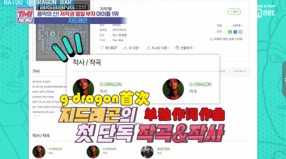 出道首一位的《谎言》是他作词编曲,大火的《Fantastic Baby》《一天一天》《Good Boy》等热单,他也是词曲的第一作者