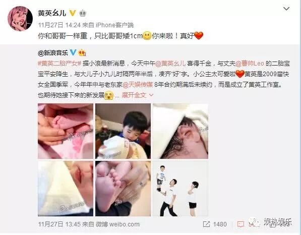 转眼已经过去两年多光阴,11月10日黄英又晒出了孕照,这次她是幸福的二胎妈妈。