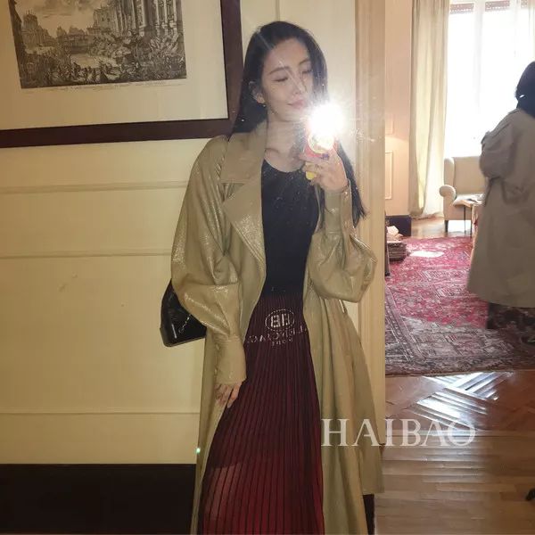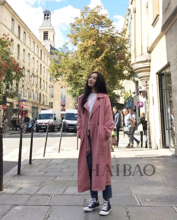 还可尝试长裙+风衣的混搭风,用黑色短靴增加气场!