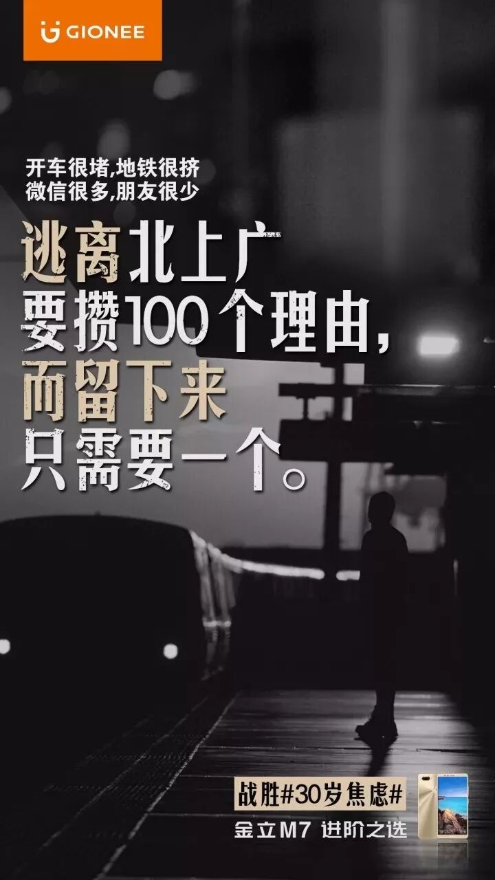 海报中黑白的画面和静止的表情,仿佛都在印证着30岁焦虑人群的心理状态,很多人说,金立这次真的走心了,但其实真正让消费者感到走心的,应该是这些与己相关的场景。