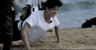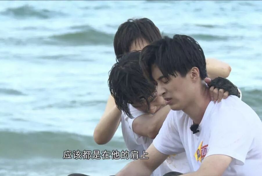他好像彻底换了一个人,严肃认真地对待比赛,在汹涌的海水里完成团队深蹲90个,赢过了友队,初尝胜利的喜悦。