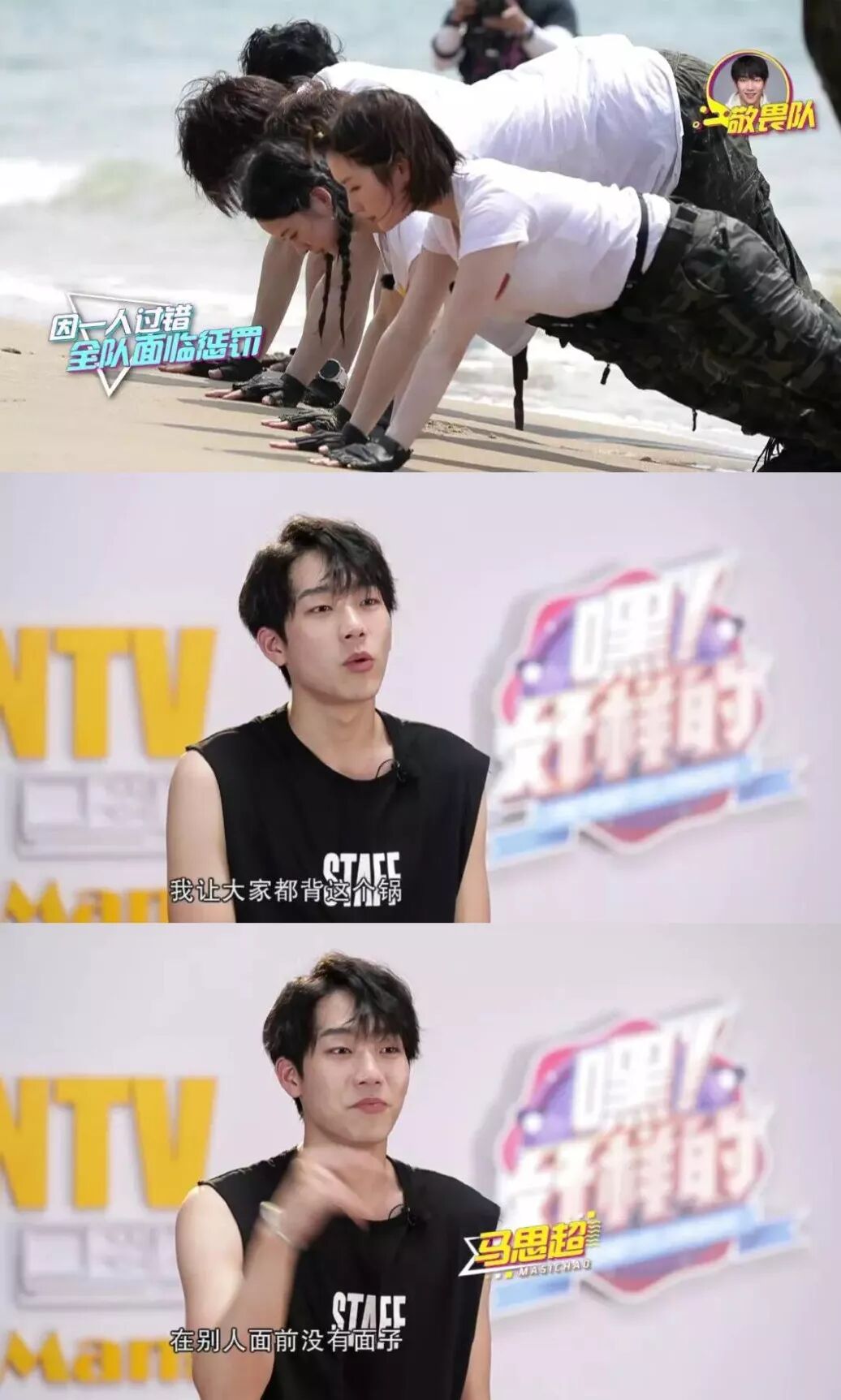 波比跳的时候马思超细心体谅其他队员,向教官建议女生在平地做,教官采纳了他的意见。
