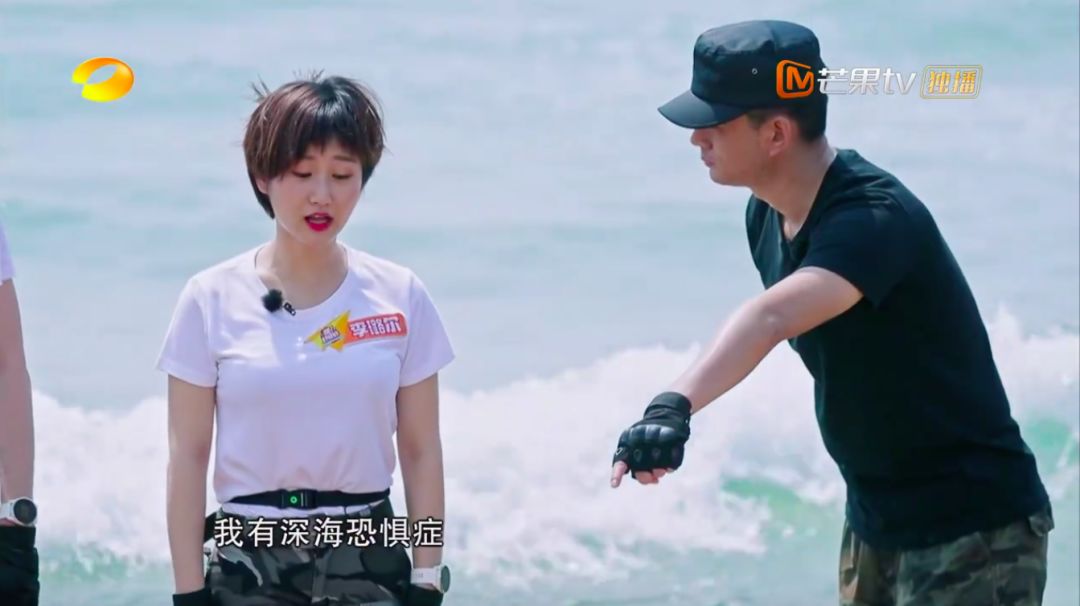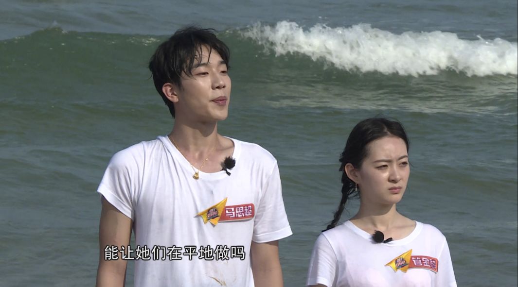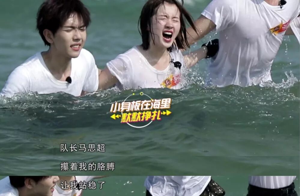 在海里深蹲的时候,弱小的女生承受极大身体压力,非常容易被海浪冲走,马思超就紧紧攥着李浩菲的胳膊,给她力量。