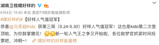 目前节目播出过半,主持新生的个人成长历程便出现极大反转,未来他们还将会有怎样的蜕变?最终谁将会问鼎新人王,登上湖南卫视2019年跨年晚会?让我们拭目以待。