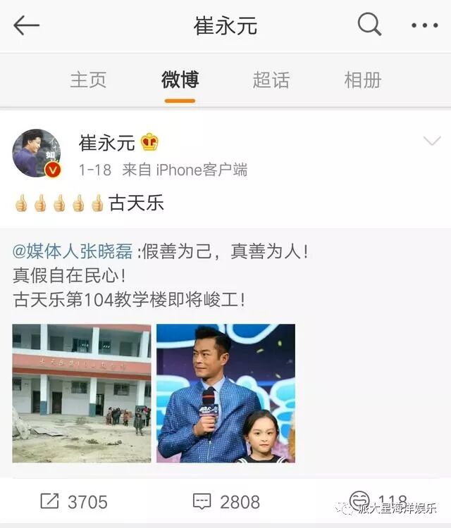古天乐自己捐钱建小学的事儿已经不新鲜了,最值得点赞的是他一直在做善事。这种默默无闻的善良真的不容易,而且大家平常也没有见过古天乐有频繁上热搜,博关注。他这种低调做善事,而且不为名利的明星更值得大家关注。