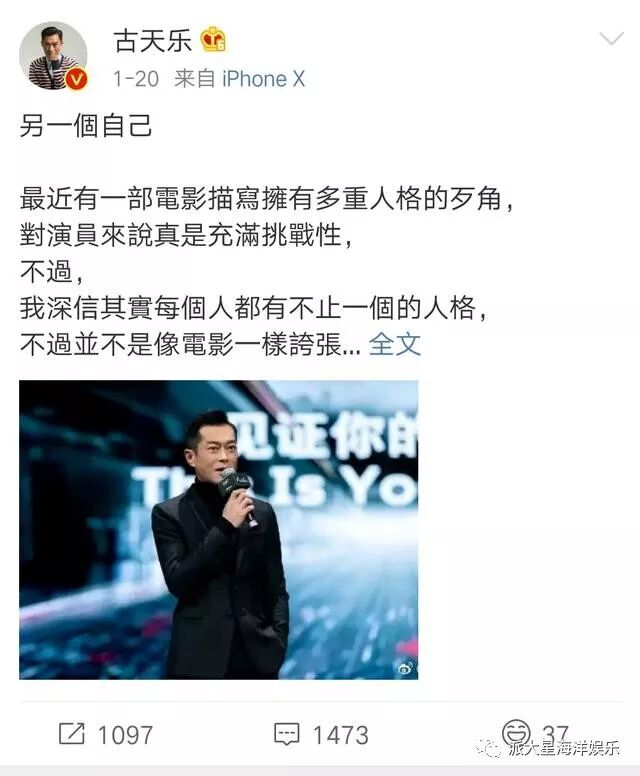 现在古天乐主要演电影,看他的微博真的很低调。平常,他只宣传一下自己的电影,或者分享运动心得。