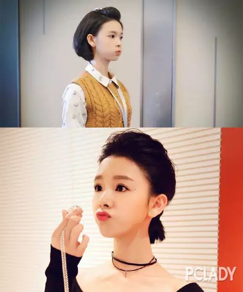 如果觉得齐刘海太普通了,那么陈瑶也亲自示范了什么叫做“好看又显幼龄”的斜刘海。在即将开播的新剧《柜中美人》里,陈瑶摆脱了标志性的齐刘海,而是选择用斜斜的刘海遮住额头,更加凸显她精致小巧的五官,卖萌指数也是出乎意料地高啊。