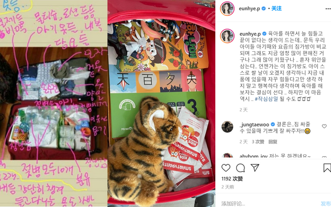 前些天,朴恩惠在社交平台上晒图火了,这是她为儿子整理行李箱的对比照。