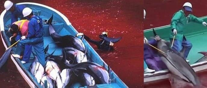 这些海豚,一部分被当场捕杀,一部分被卖给各地的海洋馆,经过残酷的训练后,为游客进行表演。