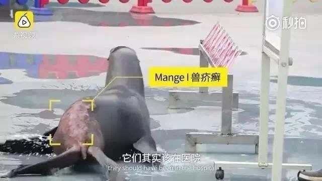 海洋哺乳动物,它们是靠回声定位来导航和联络的,而长期生活在限制的空间中,它们发出的超声波被快速反射回来,这样它们不得不忍受痛苦,这也导致了它们比起海洋同类,寿命缩短了一半。