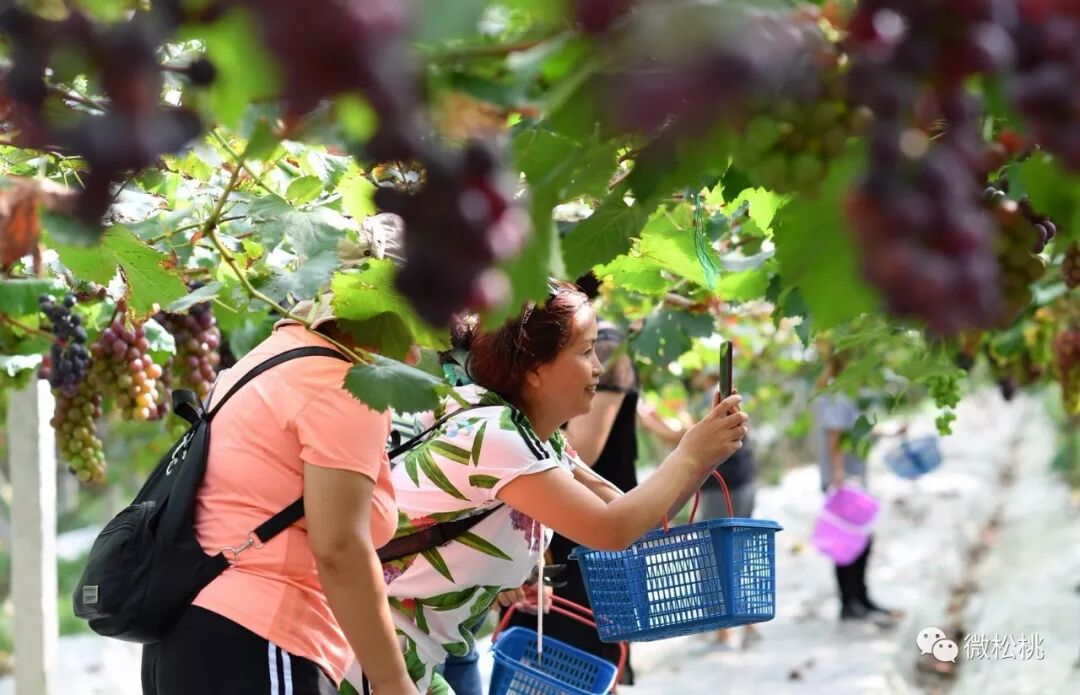 “50多亩的葡萄园,即使来走一走,也能饱了眼福,更不用说大饱口福了。”陈杰有着自己的理由。刚才,他随手发了一个朋友圈,“生意”就主动找上了门来,亲朋好友们点赞的同时也纷纷留言,托他带上个三五斤。这不,一家三口提着“冒了尖”的篮子,却还在因为不够分而发愁。