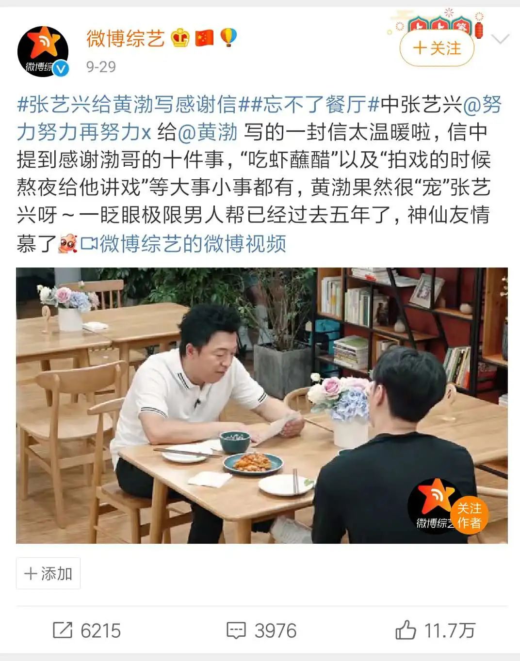 黄渤念张艺兴写给他的写信,“我不知道自己运气这么好,可以认识你,成为你的弟弟,感恩这所有的一切,希望永远是你的好弟弟。