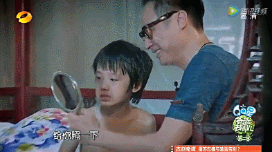 孩子受了伤,他拿镜子给他看,问是不是好丑?