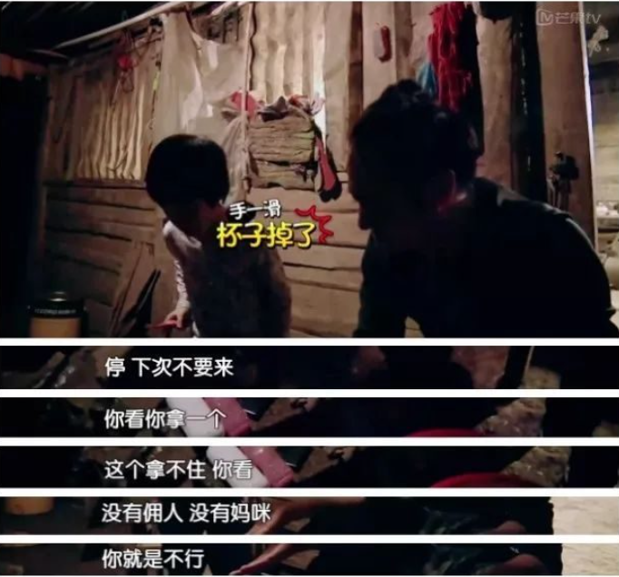 儿子刷牙的时候手滑杯子掉了,吴镇宇开始数落他,没有妈妈和佣人在,你什么都不行。