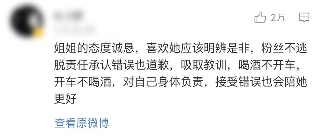 陈乔恩酒驾后道歉,获部分粉丝夸赞/微博
