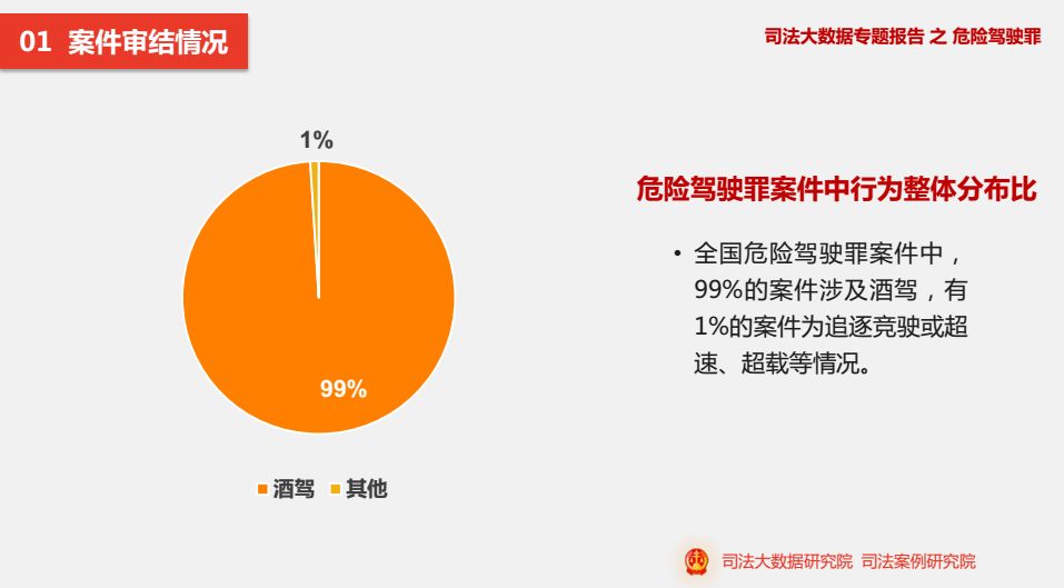 全国危险驾驶罪案件中,99%的案件涉及酒驾。