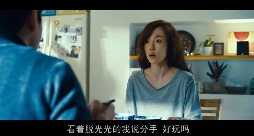 仅从影片开头贞仁和妈妈日常电话片段,就依稀领教了她的唠叨和自我沉醉的功夫,已然到了让人无语的境地。而婚后她作为全职太太,负责料理家里的一切,这是丈夫斗贤给她的殷实和安全感,但作为妻子却一直没能有个孩子,加上生活的琐事,既不愿社交,又无其它爱好,还和父母关系不和睦的贞仁,将所有唠叨、抱怨、烦躁等负面情绪当做爱都给了丈夫。