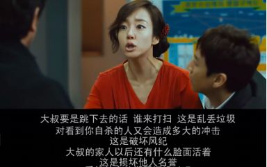 真正的有效沟通,是在心平气和,换位思考的基础之上,斗贤和贞仁从没有认真谈论过他们之间的问题,取而代之的是无畏的争吵和更加的不理解,一个懦弱不敢言,一个激愤不听人言,斗贤没有思考过妻子为何变得如此唠叨,愤世嫉俗,妻子总是站在自己的处境思考别人,例如她一个人上厕所会觉得孤独,同理得,丈夫上厕所的时候也一定很孤独。所以丈夫连这点私人空间也会被剥夺。