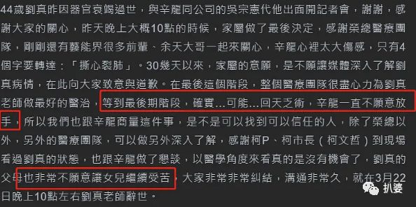 刘真去世后,吴宗宪开了紧急发布会代替刘真的丈夫辛龙发言(他是辛龙的老板),第一次让外界知道了刘真最后的日子的具体情况。