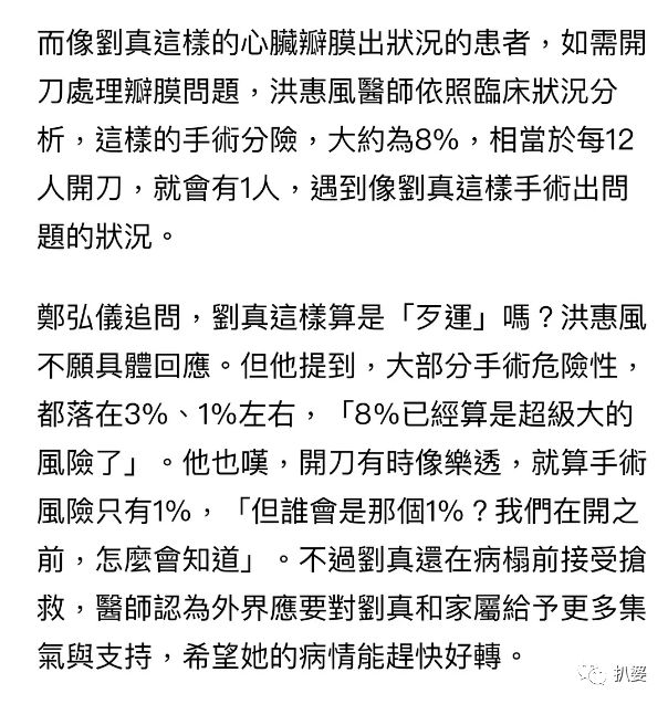而且手术前的说法是刘真做的心脏手术成功率高达95%,包括她自己在内都以为自己做的只是个普通手术而已,没想到意外的5%就那么发生了。