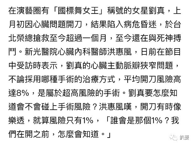 那这么可爱善良的刘真,却在一场心脏手术时出了意外并且终究没能熬过来。