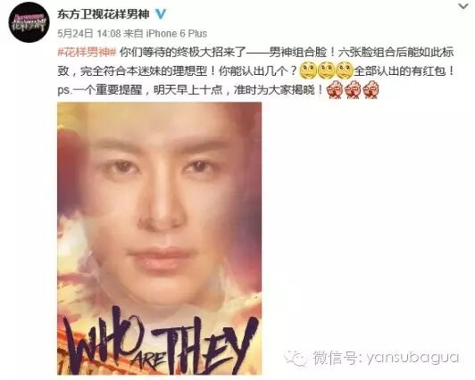 预告这样,说是几个男神的脸拼在一起的。