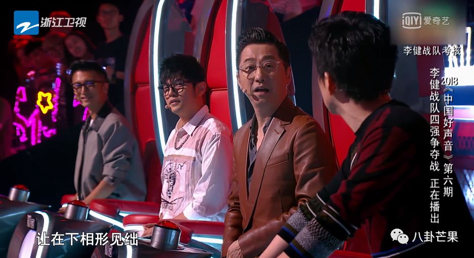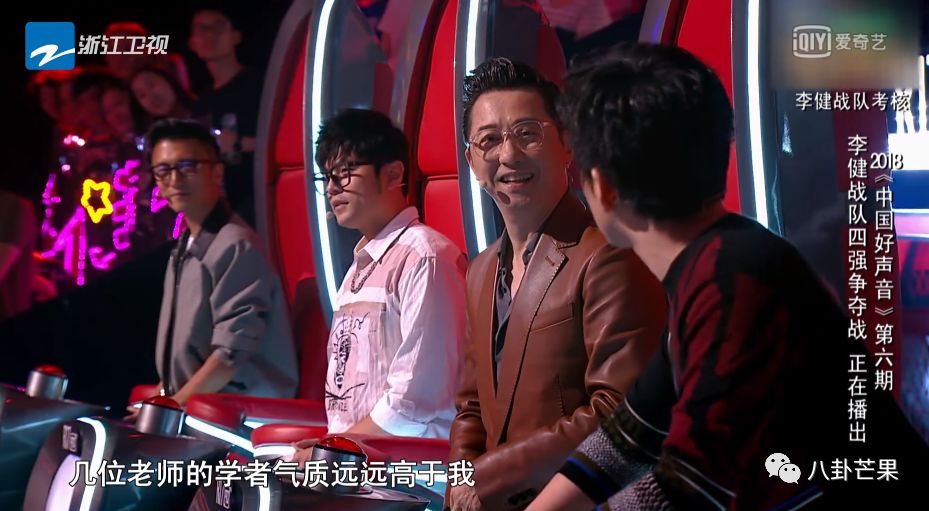 几位导师带了眼镜配合他的学者气质,李健夸他们:学者气质远远高于我,让在下相形见绌。(用充满学者气质的话来说自己没有学者气质,暗戳戳的皮~)