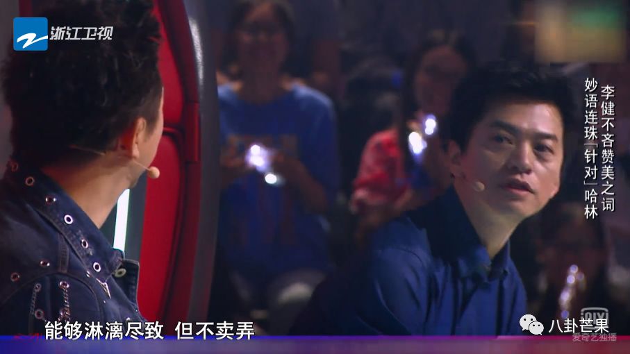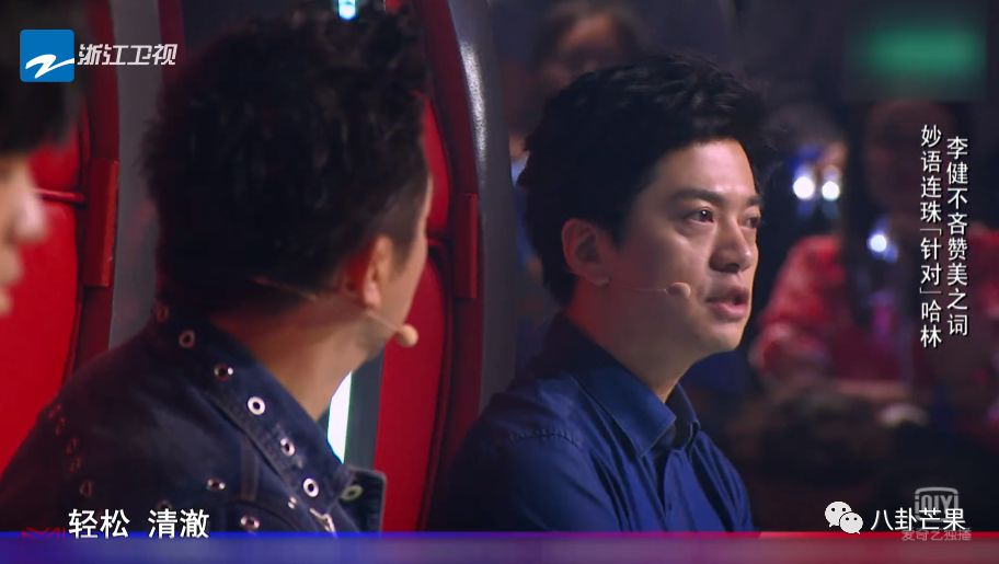 哈林对这位淘气先生是又爱又恨的。某次哈林说了一段长长的话夸某位选手,李健补刀:哈林哥说了那么冗长的一段话,其实我只说一个字就可以概括他为什么有魅力!